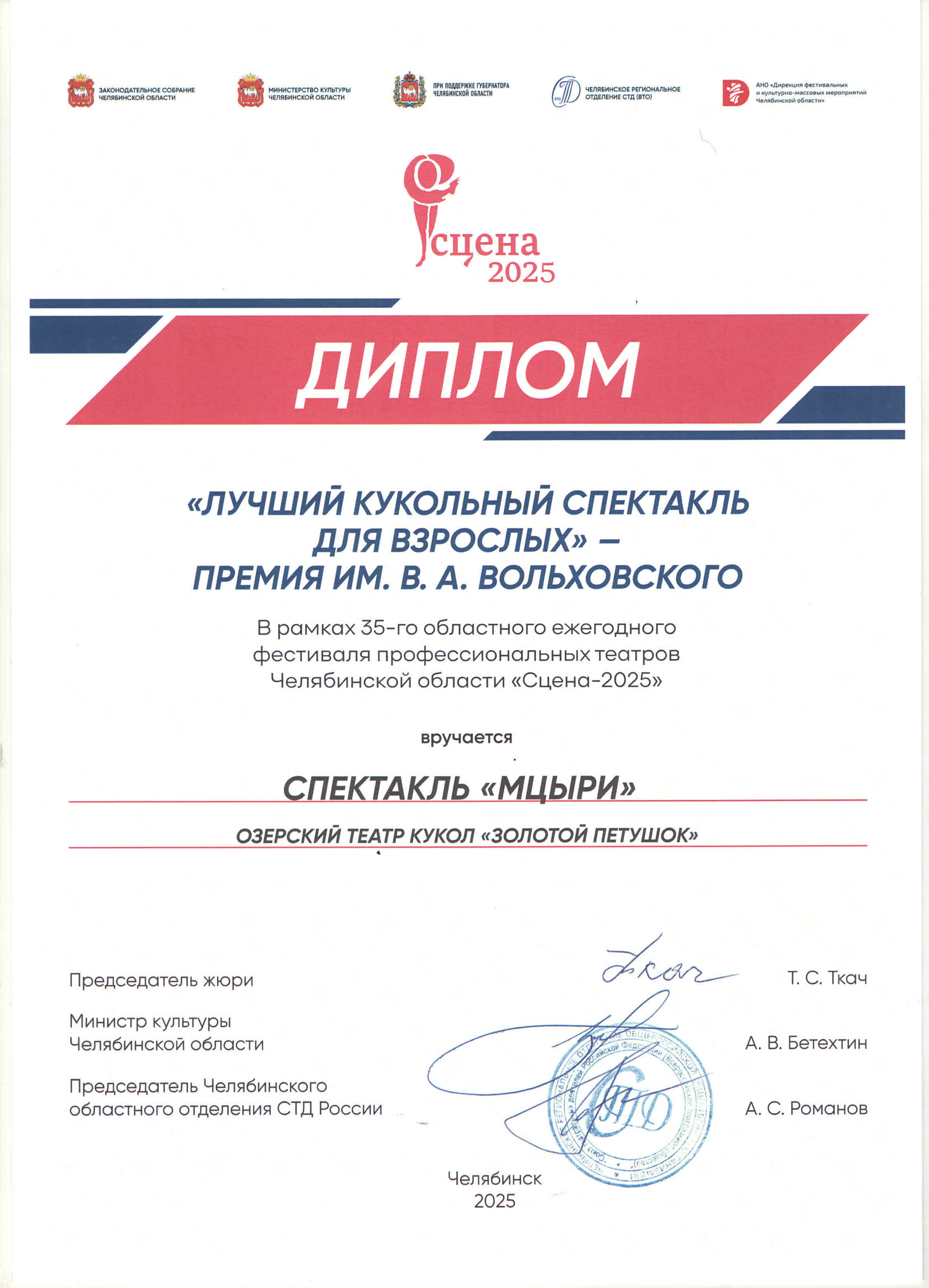 И вот она, заслуженная награда! Наш "Мцыри" – признан лучшим кукольным спектаклем для взрослой аудитории и удостоен премии имени Валерия Вольховского!